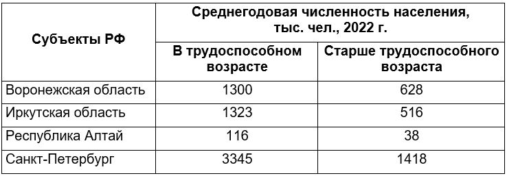 С учётом приведённых данных выберите верное утверждение о коэффициенте демографической нагрузки лицами старше трудоспособного возраста.