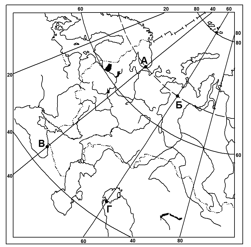 Определите точку на карте России, в которой полуденное Солнце 22 июня находится под углом 47º, а ее местное время больше местного времени среднего меридиана 3-го часового пояса на 20 минут.